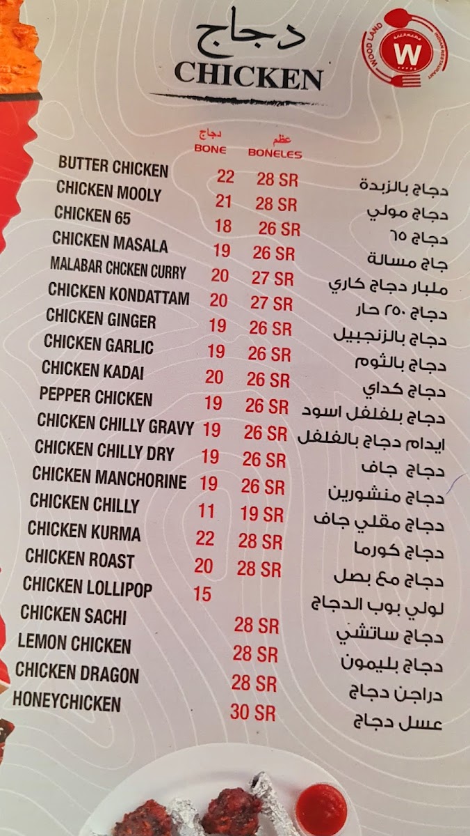 مطعم الغابه Woodland Indian Restaurant Menu